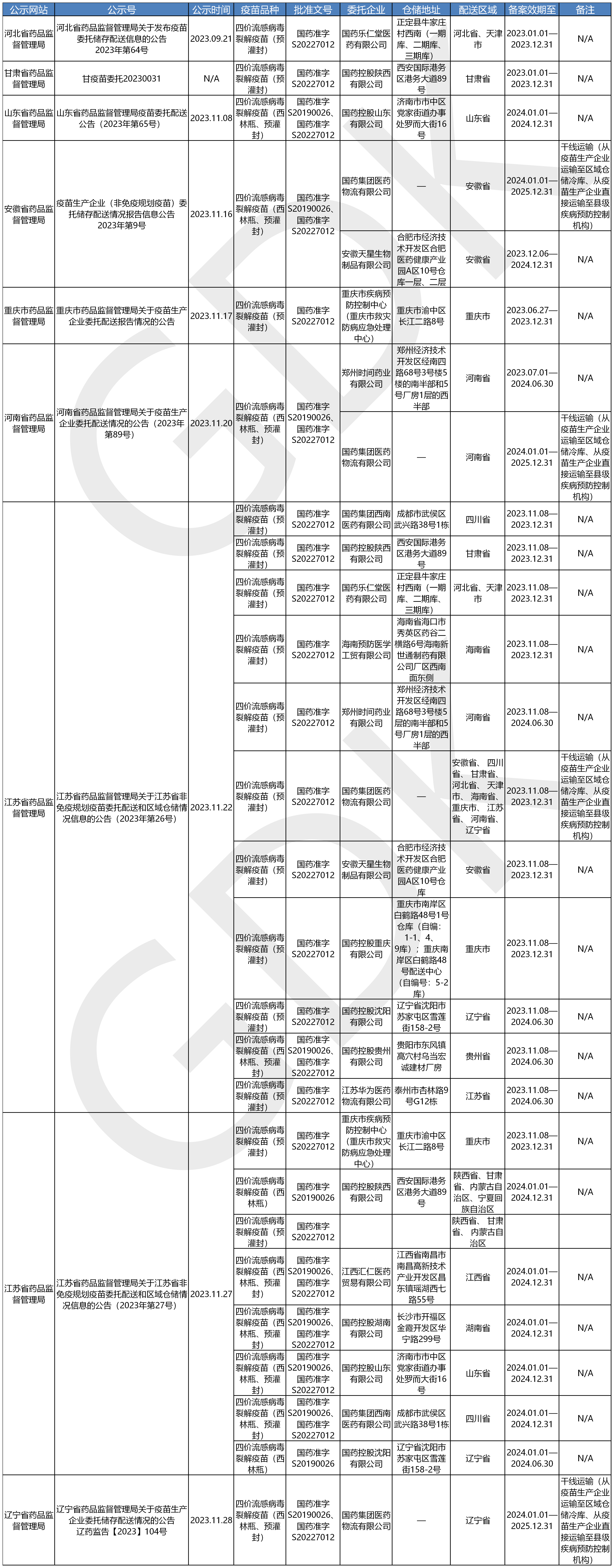 疫苗委托冷链储存、配送企业信息公开