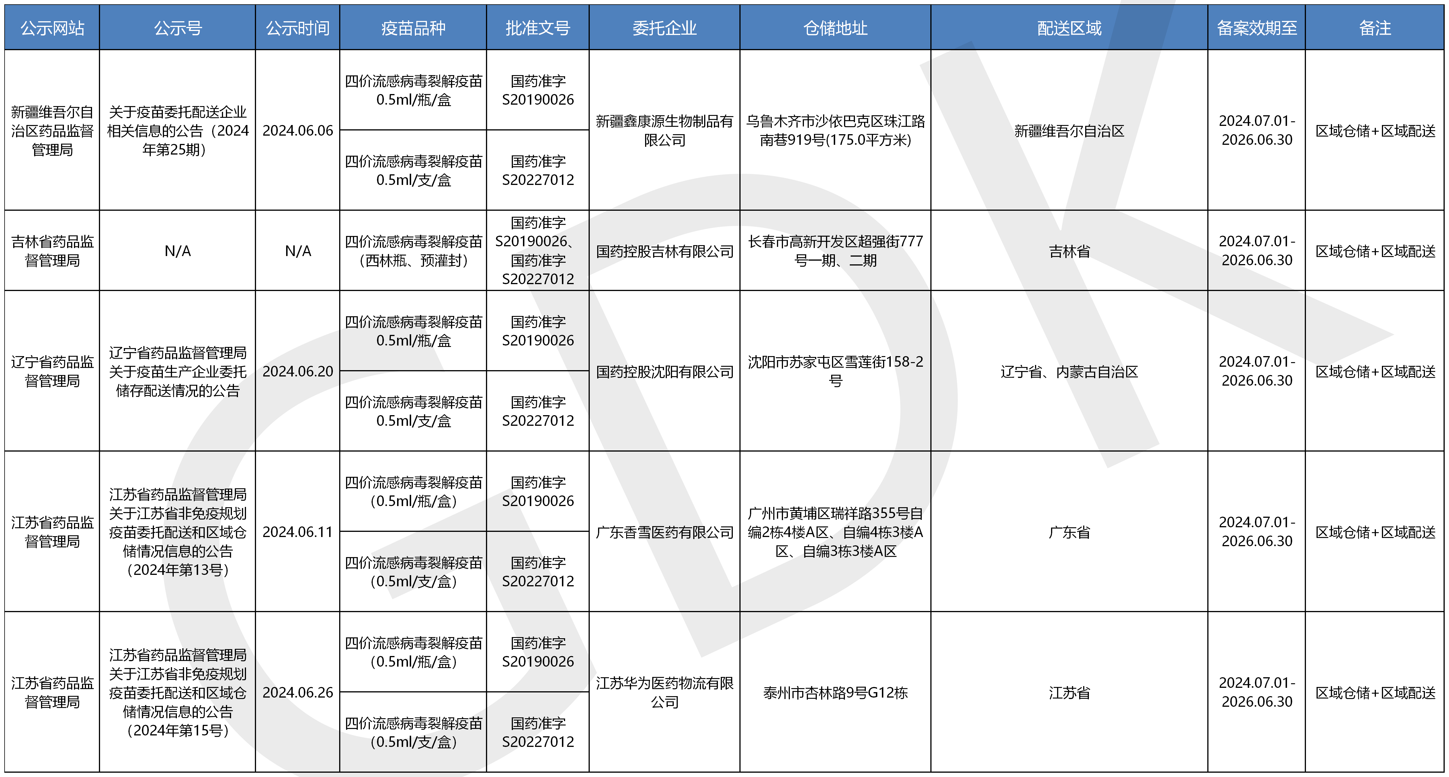 疫苗委托冷链储存、配送企业信息公开